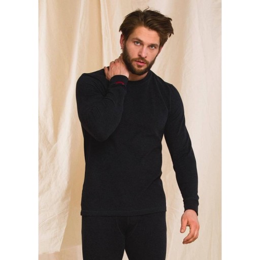 Super ciepła koszulka męska z serii Hot Touch, z dzianiny bawełnianej, obustronnnie drapanej Półokrągły dekolt i komfortowy rękaw, wykończony bezuciskowym ściągaczem Doskonała jako bielizna zimowa dla aktywnych mężczyzn Skład: 95% bawełna, 5% elastan