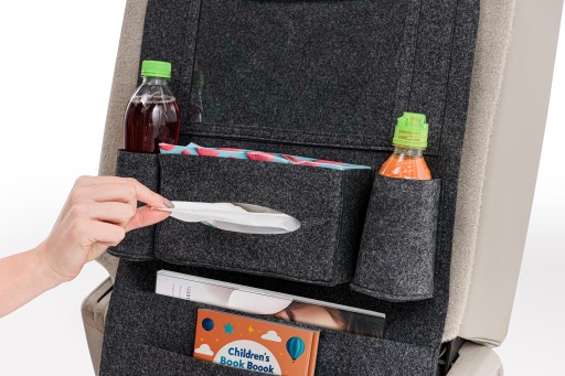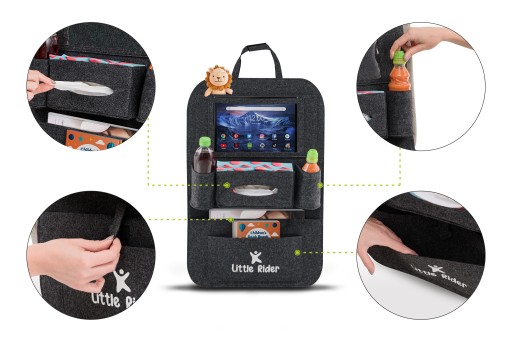 Organizer doskonale sprawdza się gdy przewozimy dzieci w fotelikach samochodowych, umożliwiając dziecku oglądanie filmów oraz przechowywanie zabawek i akcesoriów, co czyni każdą podróż przyjemniejszą. Sprawdzi się przy małych dzieciach, gdzie potrzebujemy szybki i łatwy dostęp do takich rzeczy jak chusteczki nawilżane, czy butelki z piciem. Organizer utrzymuje dziecko zajętym, zapewniając mu dostęp do ulubionych zabawek i akcesoriów. Idealnie sprawdzi się też w codziennych przejazdach, np. do szkoły czy przedszkola. Dzięki licznym kieszeniom, łatwo zachowasz porządek w samochodzie.