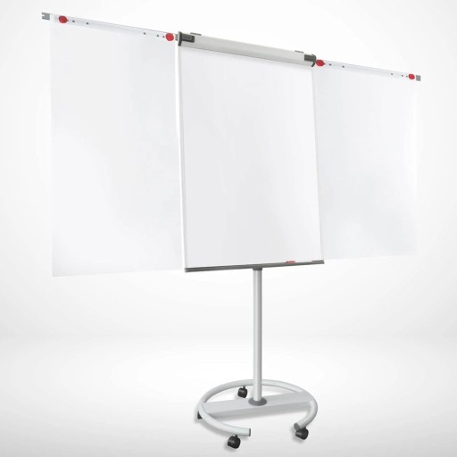 TRWAŁA, PRZEMYŚLANA KONSTRUKCJA – rama wykonana została z aluminium anodowanego. Flipchart wyposażono w specjalny uchwyt do bloku z mechanizmem sprężynowym. Dzięki niemu podtrzymasz wybrane kartki papieru. Tablica jest umieszczona na stelażu z kółkami. Dzięki temu bez trudu ustawisz ją w dowolnie wybranym miejscu w pomieszczeniu. Jest lekka, masz możliwość regulacji jej wysokości. Konstrukcja jest stabilna i odporna na uszkodzenia, co przekłada się na dłuższą żywotność tablicy.