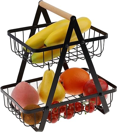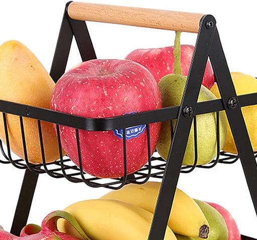 - Przydatny i stabilny: Dwupoziomowa konstrukcja zapewnia efektywne przechowywanie owoców, a solidność wykonania gwarantuje stabilność kosza. Drewniany uchwyt ułatwia przenoszenie.
