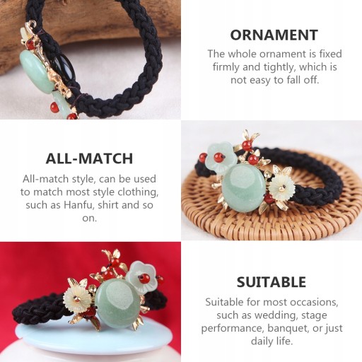 Cechy Kolor: jak pokazano. Materiał: Jadeit, syntetyczne kolorowe szkliwo, zielony agat. Rozmiar: ok. 4,00X4,00X3,00 cm/1,57X1,57X1,18 cala. Lina do włosów warkocza jest elastyczna i gruba, co nie jest łatwe do złamania i wygodne w noszeniu. Nadaje się do każdej grubości włosów, co jest praktyczne i trwałe. Styl etniczny i styl allmatch, odpowiedni na większość okazji i wydarzeń. Doskonały do mocowania włosów, ale może również ozdobić włosy w tym samym czasie. Nie zaszkodzi twoim włosom i skórze głowy, dekoracyjny i praktyczny.
