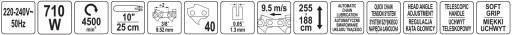 - Kąt pracy głowicy tnącej: 0, +20, +40 ˚