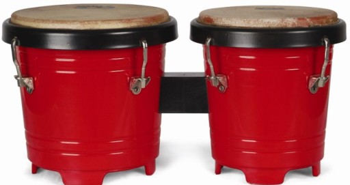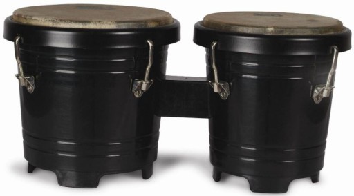 bongosy, 4" + 5", błony ze skóry naturalnej, korpus z tworzywa sztucznego, metalowa mechanika.