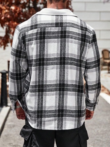 БЕЛАЯ ЧЕРНАЯ ФЛАНЕЛЕВАЯ РУБАШКА С КАРМАНАМИ SHEIN 52