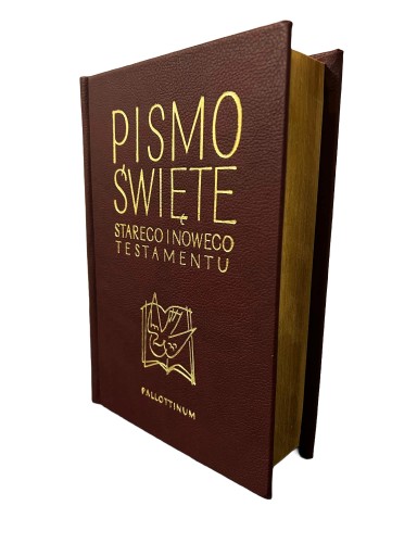 Posiada skórzaną oprawę, podręczny format, złote napisy i złocone brzegi, co sprawia, że z tym wydaniem Pisma Świętego trudno się rozstać.