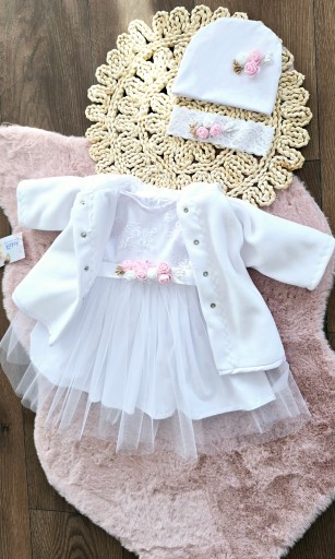 PIĘKNY Polarowo bawełniany ELEGANCKI KOMPLET DO CHRZTU