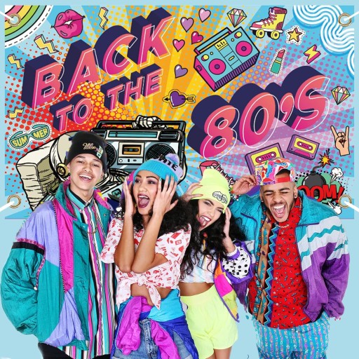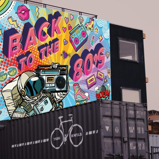 ①Baner z lat 80. XX wieku, dekoracja na imprezę, dyskotekę, imprezę, baner, tło z lat 80., dekoracja tła, kolorowa dekoracja na imprezę z lat 80., 180 x 110 cm