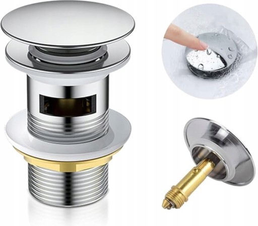 Srebrny Korek Umywalkowy Klik-Klak z Przelewem