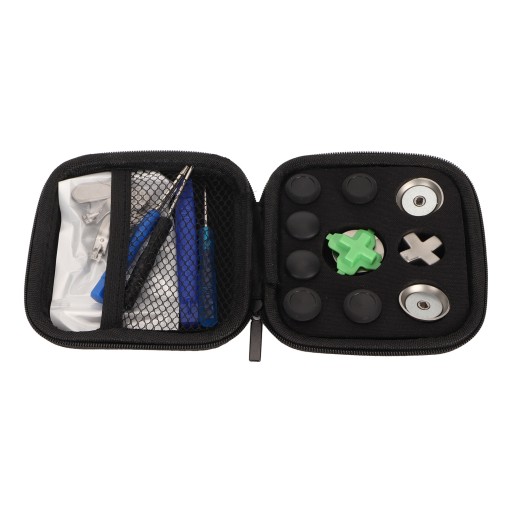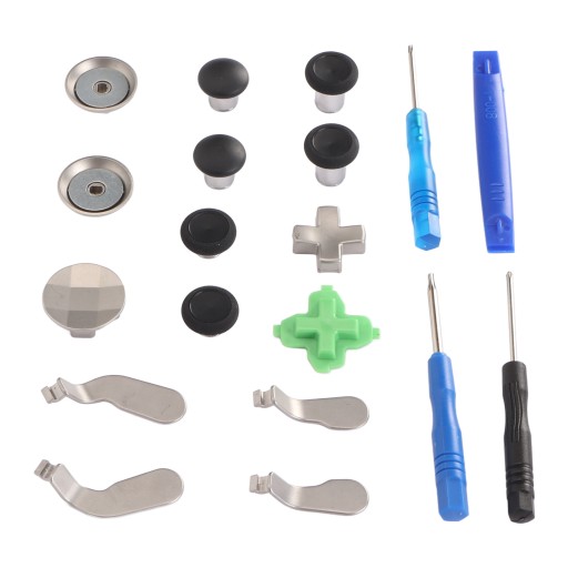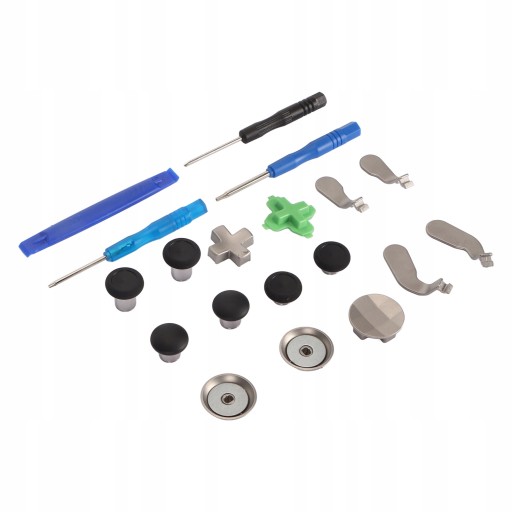 5. ZESTAW ZAWIERA: Pełny zestaw 15 części zamiennych do kontrolera bezprzewodowego i 4 narzędzia konserwacyjne, każde z 6 drążkami i 3 przyciskami kierunkowymi oraz 4 blokadami spustu łopatkowego i dwiema dodatkowymi magnetycznymi podstawami joysticka. Można modyfikować inne kontrolery za pomocą metalowych podstaw drążków i kciuki. (Kontrolery nie są dołączone)