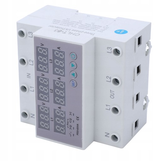 . 3-fazowy woltomierz na szynę DIN Amperomierz