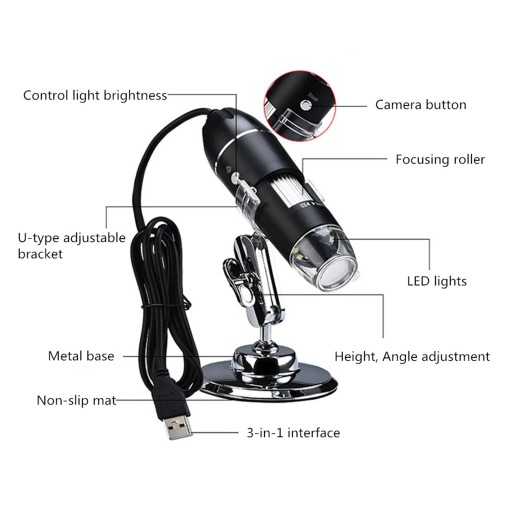 Mikroskop cyfrowy 1, danych USB / Type-C / Micro USB jest kompatybilny z większością popularnych telefonów komórkowych, dzisiejszych komputerów