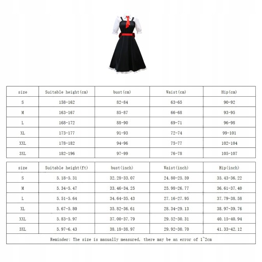 Lista pakowania: sukienka, pasek, akcesoria do włosów, krawat, białe rękawiczki, peruka, opaska do włosów;