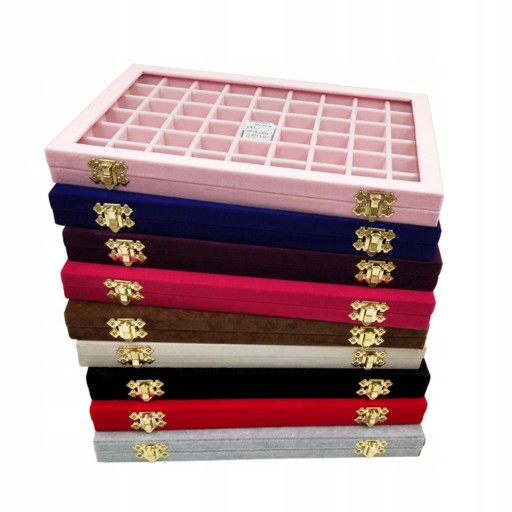 Zbudowany z wytrzymałej płyty kompozytowej owiniętej wysokiej jakości aksamitną tkaniną z wyjmowanymi przegrodami i szklaną pokrywą, aby uporządkować i chronić biżuterię i
