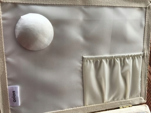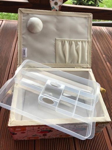 Niciarka w formie praktycznego koszyka o wymiarach 30 x 23 x 16 cm. Idealna do przechowywania przyborów do szycia jak również drobiazgów np. biżuterii. Wewnętrzna część otwieranej klapy posiada poduszeczkę do wbijania igieł lub szpilek oraz praktyczną kieszonkę. Oryginalny produkt czeskiej marki Orion. Wyprodukowano zgodnie z europejskimi standardami.