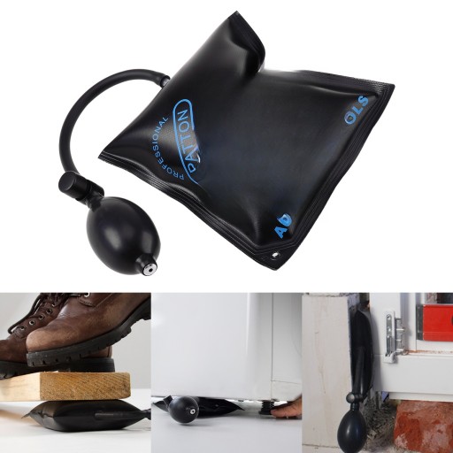 ✅montaż drzwi i szafek; zastępuje szkodliwe podważacze i drewniane podkładki. Bardzo łatwo nadmuchać i spuścić powietrze z podkładki. Kiedy nadmuchujesz podkładkę powietrzną
