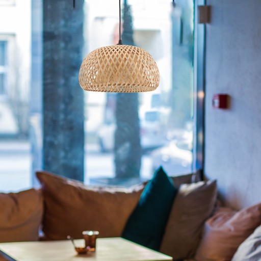 Ta bambusowa lampa wisząca została wykonana z najwyższej jakości materiałów zapewniających długotrwałe użytkowanie. Wygląda prosto i elegancko. Może pasować do mebli w stylu rustykalnym, dobrej dekoracji hoteli itp. Dzięki tkanemu bambusowi wygląda tak szykownie.