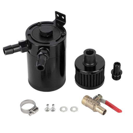 Uniwersalny pojemnik na zbiornik oleju ze stopu aluminium z 2-portowym zestawem akcesoriów (czarny)
