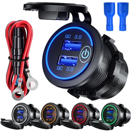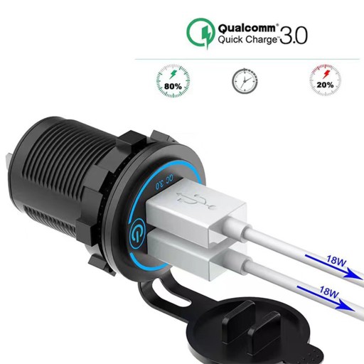 PODWÓJNA ŁADOWARKA SAMOCHODOWA GNIAZDO ZAPALNICZKI MONTAŻOWE 2x USB QC 3.0