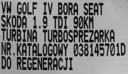 TURBINA TURBOSPRĘŻARKA 1.9 TDI VW GOLF 4 BORA SKODA OCTAVIA A3 038145701D