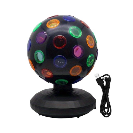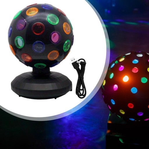 [ ]: Ta lampa w kształcie kuli dyskotekowej z kolorowymi światłami, która tworzy efekty migania, przekształcając każdą przestrzeń w parkiet taneczny.