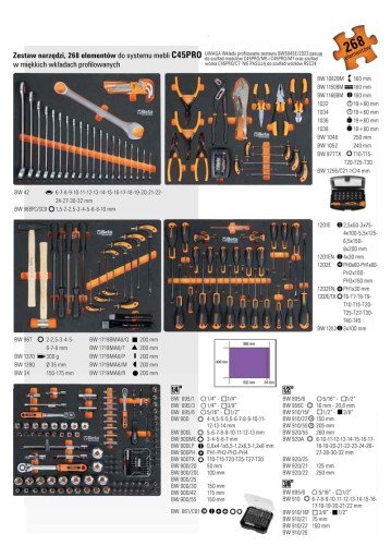 ZESTAW MEBLI WARSZTATOWYCH C45PRO Z NARZĘDZIAMI 268szt DO WÓZKA BETA