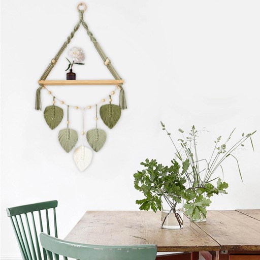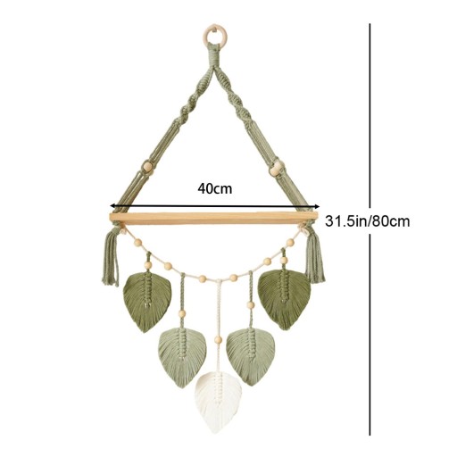 [Rozmiar produktu]: to nie tylko wiszący gobelin ścienny z makramy w kształcie liści, ale także półka do wieszania na ścianie, całkowita wysokość 80 cm/31,50 cala, drewniana półka do przechowywania 15 cm x 40 cm/5,91 cala x 15,75 cala.