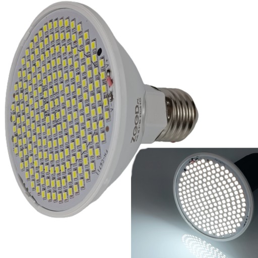 - Każda żarówka zbudowana jest z 200 diód full spectrum 2835 o barwie białej zimnej.