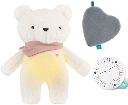 Szumiś Misiulek 5w1 emituje 3 rodzaje uspokajającego szumu: biały, fal morskich i szum z brzuszka mamy.