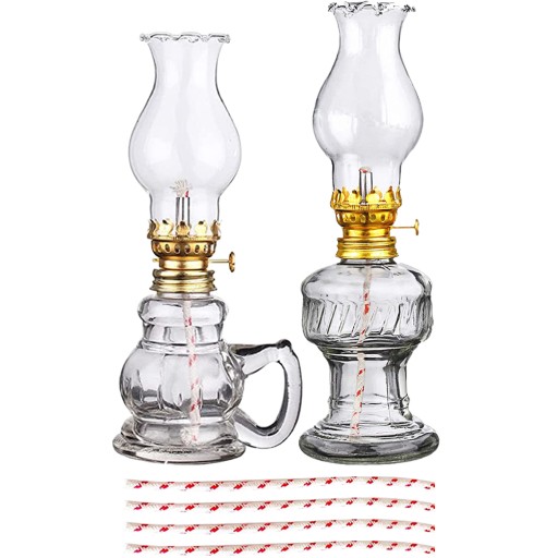 ✅1 x duża lampa naftowa, 1 x mała lampa naftowa, 4 x knoty