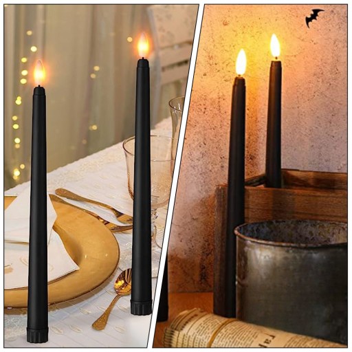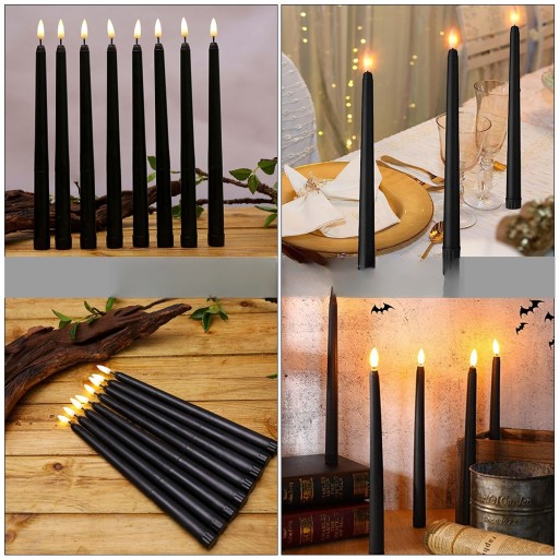 ŚWIECE DEKORACYJNE CZARNE BEZPŁOMIENIOWE STOŻKOWE 12 SZT