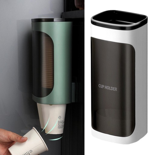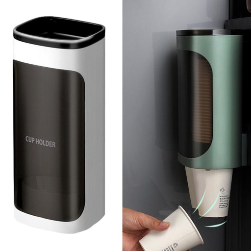 Łatwa instalacja: Istnieją dwa sposoby instalacji dozownika kubków, przykręcania lub mocowania mocnego kleju do gładkiej powierzchni. można go łatwo zamontować na ścianie lub z boku maszyny. Po prostu otwórz pokrywę na górze dozownika kubków, aby włożyć papierowe kubki, ułatwiając porządkowanie i przechowywanie kubków.
