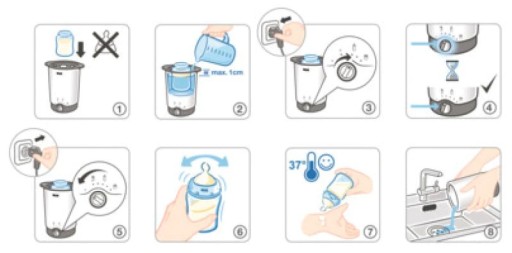 - NUK Podgrzewacz 3 w 1 należy systematycznie odkamieniać w celu zapewnienia odpowiedniego funkcjonowania.