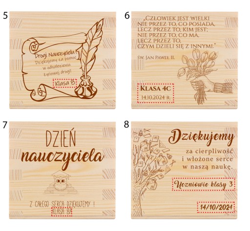 *Istnieje możliwość wprowadzenia zmian poza zaznaczonymi miejscami np. w wypadku zmiany liczby mnogiej na pojedynczą, formy męskiej na żeńską lub odwrotnie. Przy zakupie usługi dodatkowego graweru (dostępnej na naszych innych aukcjach) możemy tekst ze wzoru zastąpić tekstem podanym przez kupującego. Należy wówczas pamiętać, że ilość znaków przesłanego przez klienta powinna odpowiadać ilością znaków tekstu ze wzoru.