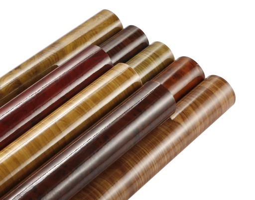 Artykuł: folia winylowa z błyszczącą teksturą i drewnianym ziarnem
