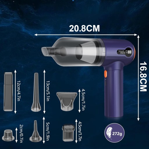- ☑ Miniaturowy odkurzacz samochodowy jest mały i lekki, dzięki czemu można go łatwo zabrać i zabrać ze sobą.
