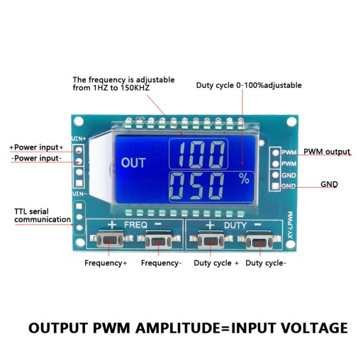 1. Częstotliwość i cykl pracy wyświetlacza LCD, bardzo wyraźne, wyjście PWM można ustawić oddzielnie częstotliwość i cykl pracy.
