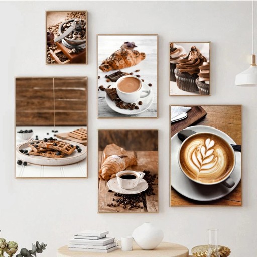 Холст постер Чашка кофе и шоколадный торт