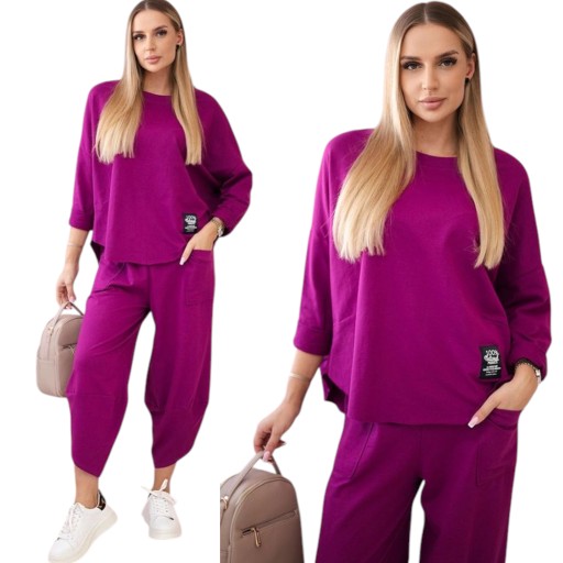 to połączenie elegancji i wygody, które idealnie pasuje do wielu okazji. Ta tkanina jest nie tylko miękka i przyjemna w dotyku, ale także pięknie się prezentuje. Bluza to doskonały element garderoby zarówno na co dzień, jak i na specjalne okazje. Możesz nosić ją solo lub zestawić z inną częścią garderoby, tworząc niezwykle stylowy outfit. Spodnie to doskonałe uzupełnienie kompletu. Ich luźny krój pozwala na swobodę ruchów, co sprawia, że są one nie tylko stylowe, ale także bardzo wygodne.
