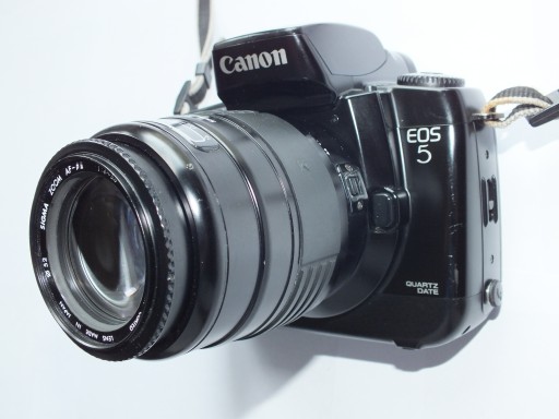 Canon EOS 5 с кварцевым календарем + зум-объектив Sigma AF-B II 55–200 мм 1:4–5,6