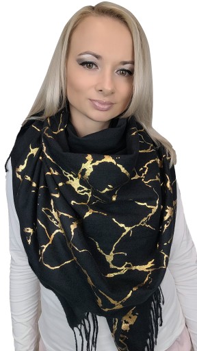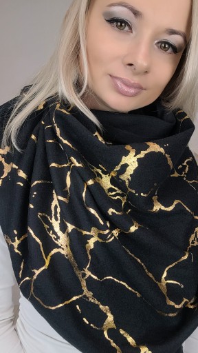 Najnowsza kolekcja szalików z wiskozy w kolorze czerni, szarości i złota. Ciepłe bardzo przyjemne w dotyku i efektowne. Krótsze boki zakończone frędzlami.