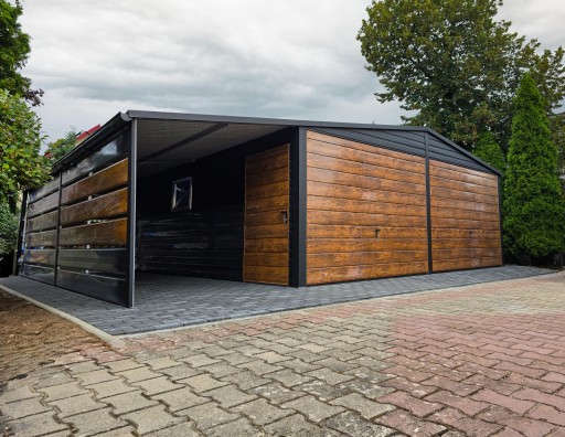 - Konstrukcja garażu wykonana jest z profili stalowych ocynkowanych (atestowanych)