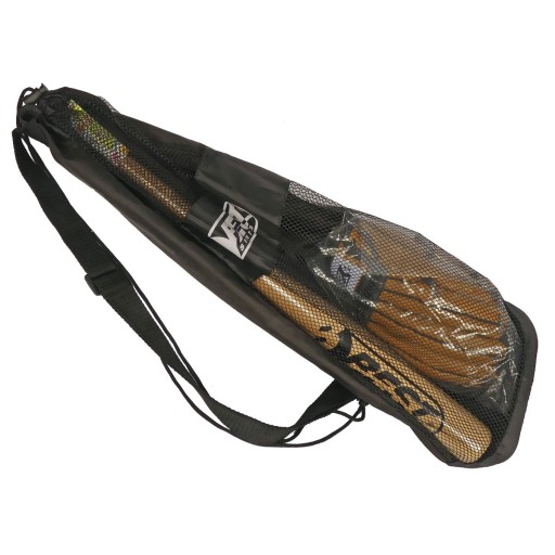 Wykonany z dużą dbałością o szczegóły z dobrej jakości materiałów dzięki temu przetrwa niejeden sezon. Rękawica łapacza na lewą dłoń, uszyta z materiałów syntetycznych o różnej funkcji, absorbuje siłę uderzenia i zabezpiecza nadgarstek gracza przed kontuzją. Drewniany dobrze wywarzony kij precyzyjnie odbjie każdą piłkę.