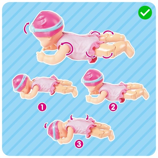 ✅ Ruchome części do pływania, lalka rusza rękami, nogami oraz głową na boki i wygląda jak prawdziwy człowiek podczas pływania. Może pływać w basenie lub wannie – wszędzie tam, gdzie potrzebuje jej Państwa dziecko.