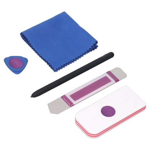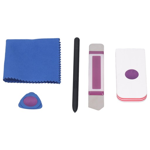 1 x pióro do ekranów dotykowych 1 x ściereczka do czyszczenia 1 x element do podważania 1 x płytka papieru ściernego 1 x płytka dociskowa