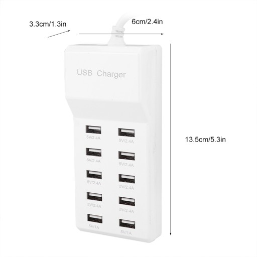 1. Ta ładowarka USB może jednocześnie zaspokoić potrzeby ładowania różnych urządzeń elektronicznych. 10 portów umożliwia ładowanie telefonu komórkowego.