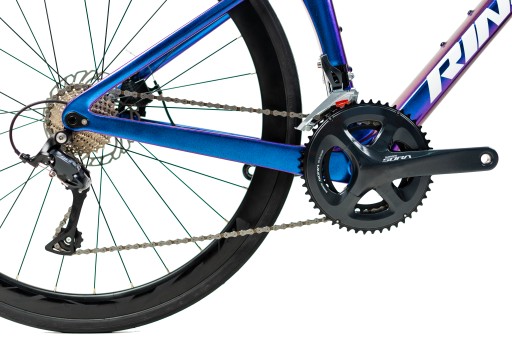 Rower szosowy RINOS to idealny rower dla poszukiwaczy przygód, którzy szukają jazdy pełnej wolności i elastyczności. Dzięki wadze zaledwie 9,8 kg jest to lekki rower, który sprawdzi się w każdym terenie. Rower ma piękne kombinacje kolorów (kameleon) w kolorze złotym i fioletowym, które przyciągają wszystkie spojrzenia.