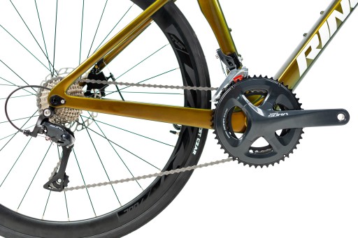 Sercem tego roweru jest rama wykonana z karbonu TORAY T800, który znany jest ze swojej lekkości i wytrzymałości. Widelec również wykonany jest z węgla TORAY T800, który zapewnia dodatkową stabilność i wytrzymałość. Rower RINOS wyposażony jest również w 18-biegowy system zmiany biegów SHIMANO SORA ST-R3000, który zapewnia płynną i precyzyjną zmianę biegów.