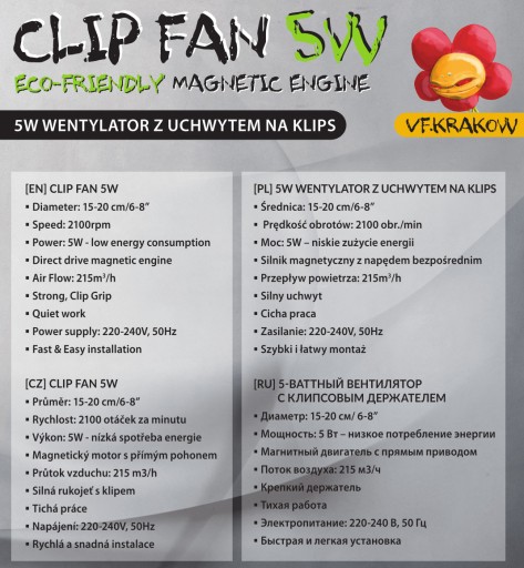 ОЧЕНЬ ТИХИЙ ВЕНТИЛЯТОР С ПРОЧНОЙ РУЧКОЙ «CLIP» - CLIP FAN 5W, VF KRAKOW