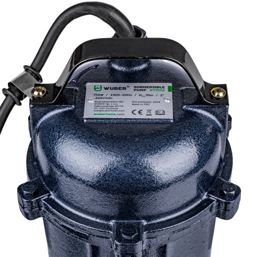 Moc 750W ► Max. wys. podnoszenia 10m ► Solidna, żeliwna obudowa ► Średnica kroćca 2'' ► Stopień ochrony IPX8 ► Obroty 3000 rpm ► Żeliwny rozdrabniacz łopatkowy ► Wydajność 15 900 l/h