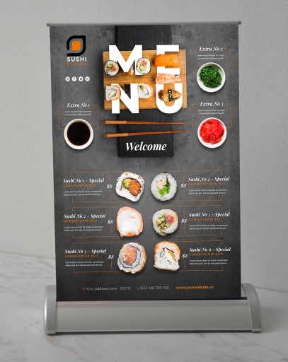 Mini Roll-up zachowuje klasyczny wygląd standardowych roll-upów, jednocześnie oferując kompaktowe rozmiary, które świetnie sprawdzają się w małych przestrzeniach: